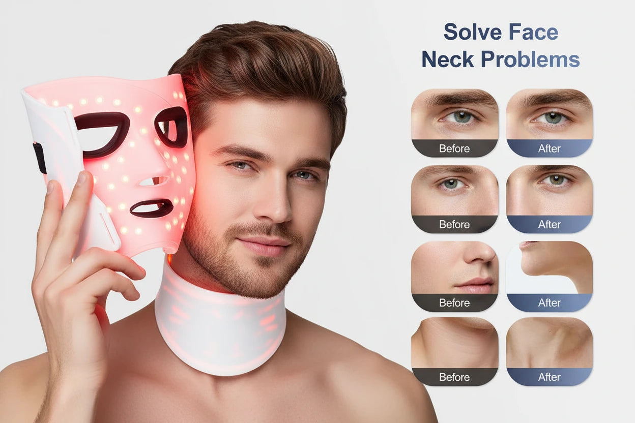 AURORA Men improves skin comfort and appearance by reducing razor irritation, dryness, fine lines, and dark circles with advanced LED innovation.